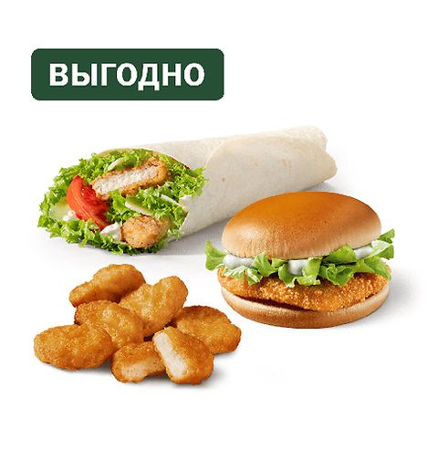 Сет Цезарь ролл и Чикенбургер с наггетсами